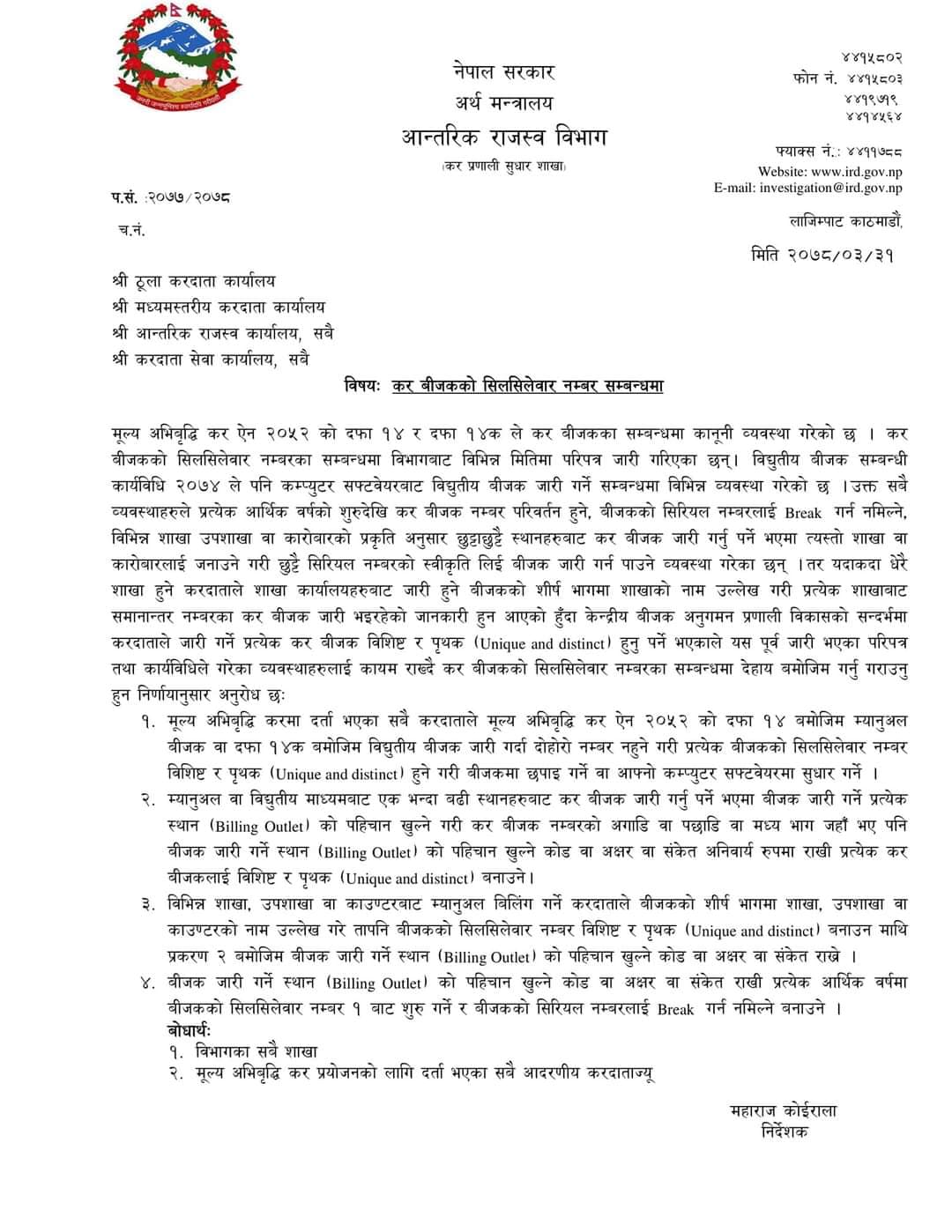 Invoing Numbering System Suggested by IRD
